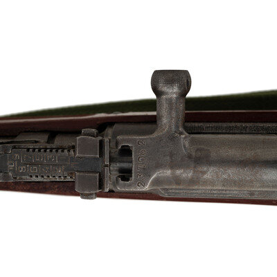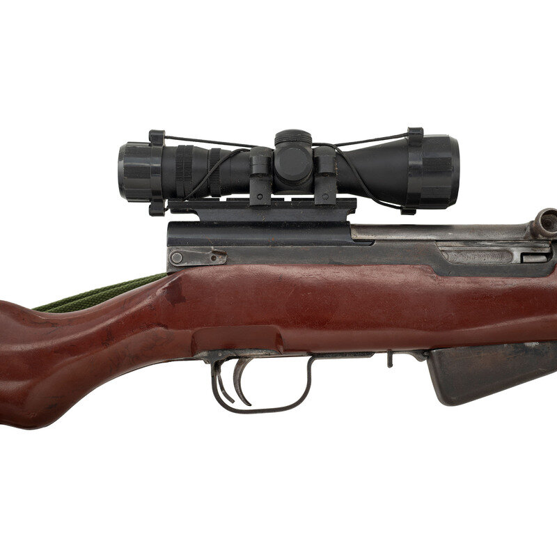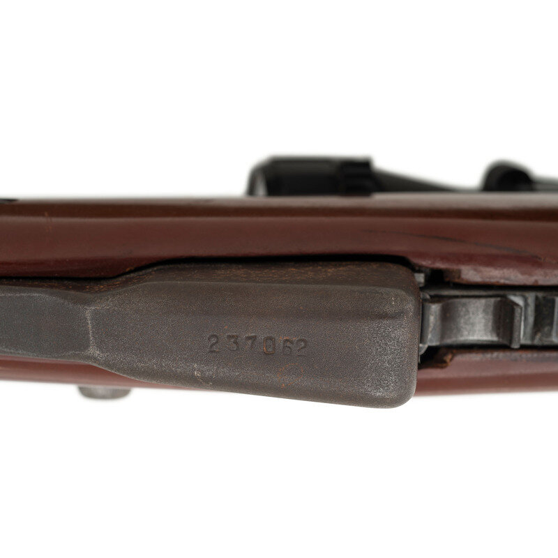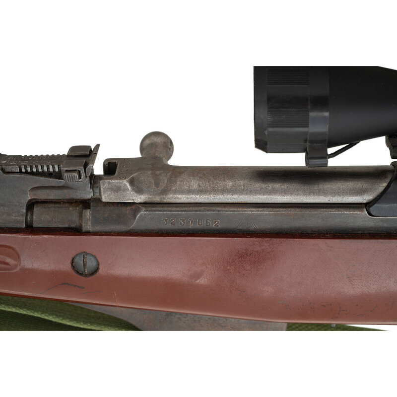 7.62x39mm. 20.5" barrel length. SN: 3237062. Blued metal finish with polished bolt set in synthetic semi pistol grip stock and mounting folding blade bayonet, and aftermarket dustcover with picatinny rail. Short stroke piston driven gas operated rifle fed by an internal box magazine charged with stripper clips. Left receiver is struck with the Factory 26 marking. Rifle shows some aftermarket modifications that have impacted normal operation, including: magazine follower incorrectly installed with rear tab failing to seat below the bolt stop. Tab has been damaged, likely by the forward motion of the bolt. Rifle lacks cleaning rod and buttstock toolkit, but comes with green canvas sling, and 5x32 telescopic sight MODEL GD5321.