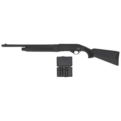 12 Gauge. 21" barrel length. SN: 21SA-KR480024. 3" chamber length. Modified Choke. Black Anodized receiver with black oxide finish to remaining parts set in black synthetic semi pistol grip stock with checkering to wrist and forend mounting rubber recoil pad. Gas-operated semi automatic shotgun fed by a tube magazine. Item features a dovetail cut receiver for optics mounting, front blade sight, and interchangeable chokes. Comes in original box with spare Cylinder and Full Chokes, and the owner's manual.