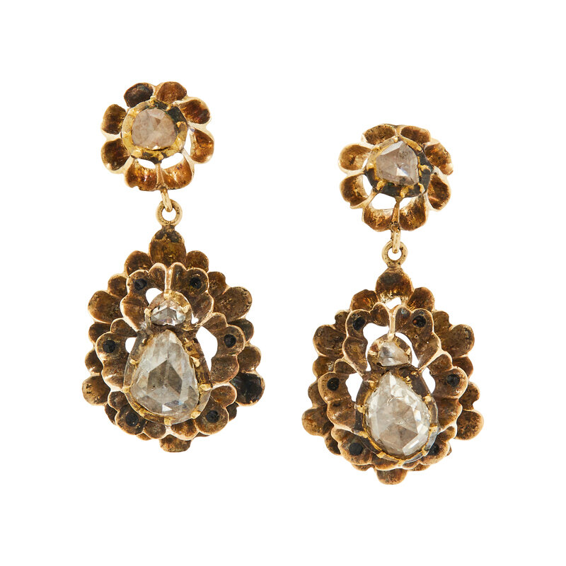 GEORGIAN, DIAMOND, YELLOW GOLD, AND GOLD-FILLED EARRINGS