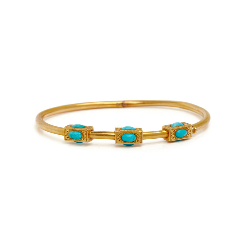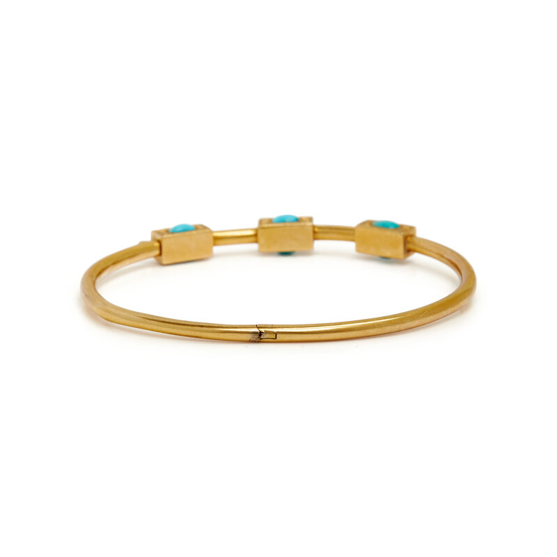VICTORIAN, PAIR OF YELLOW GOLD AND TURQUOISE BANGLE BRACELETS