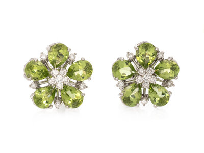 PERIDOT AND DIAMOND FLOWER EARRINGS