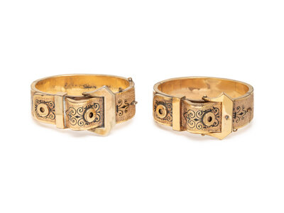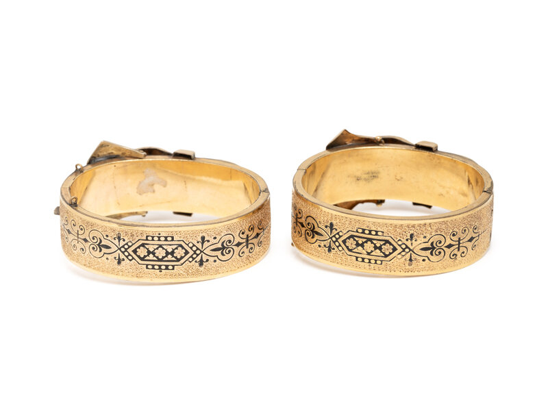 VICTORIAN, PAIR OF LOW KARAT YELLOW GOLD AND ENAMEL BRACELETS