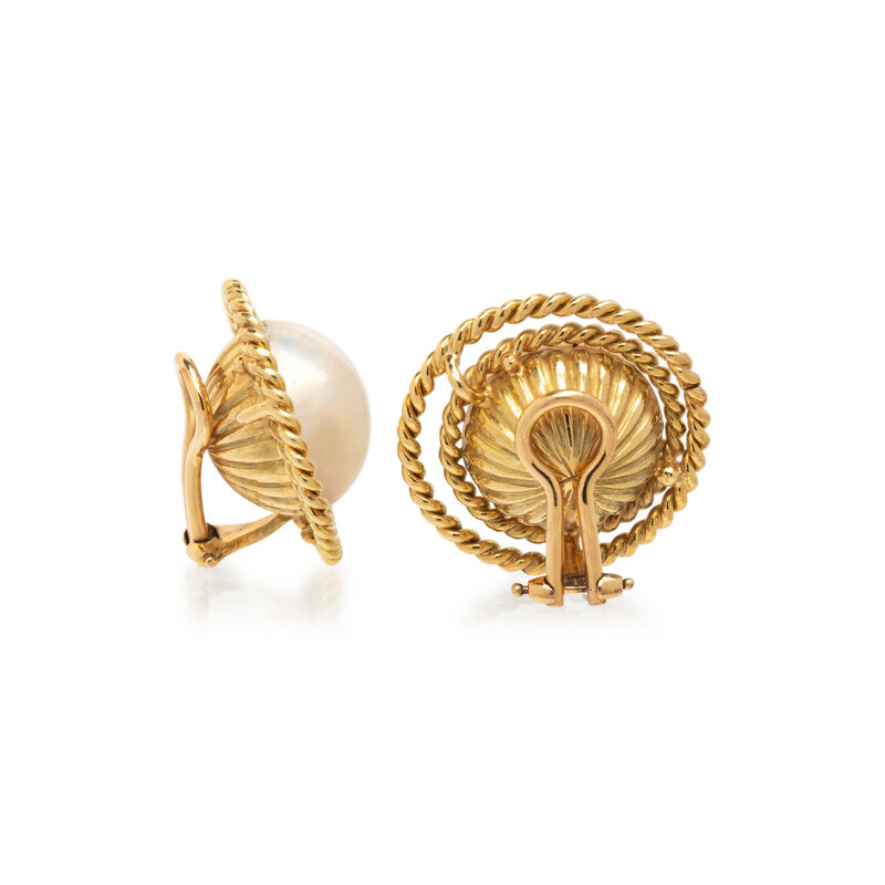 MABÉ CULTURED PEARL AND YELLOW GOLD CLIP EARRINGS