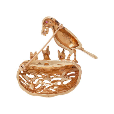 YELLOW GOLD AND MULTIGEM BIRD NEST BROOCH