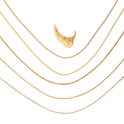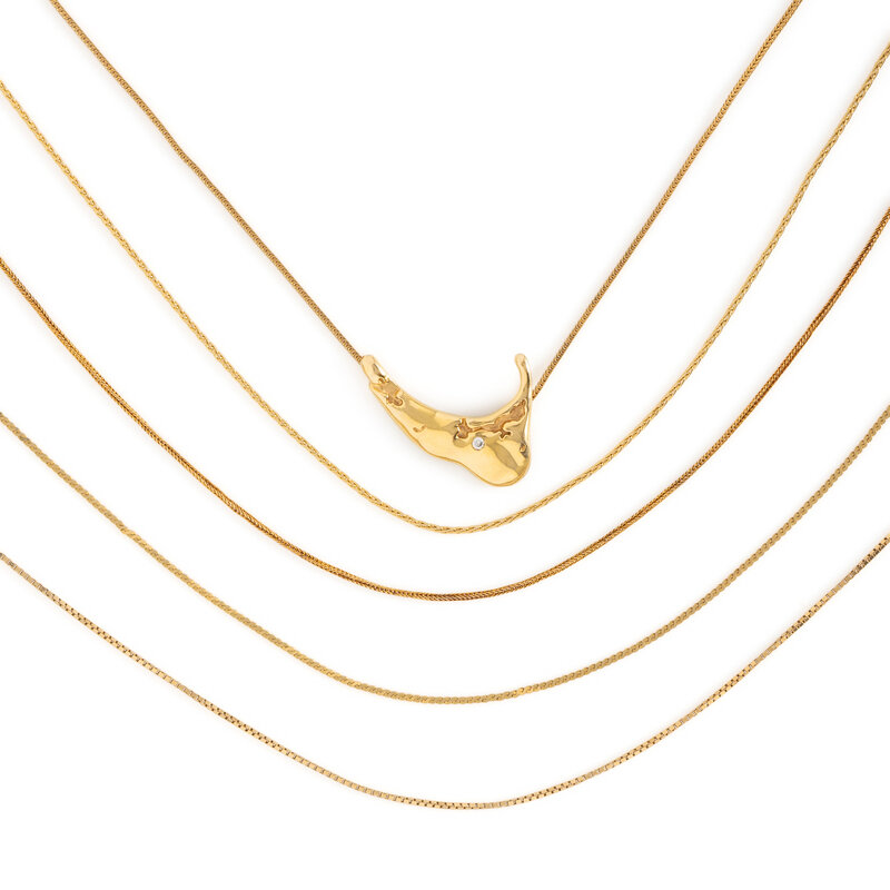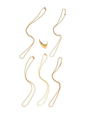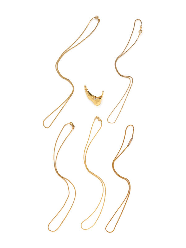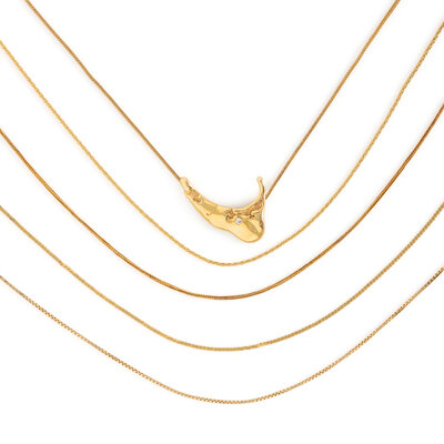 Consisting of five chains and a Nantucket pendant. Yellow gold. 15-18 inches long.