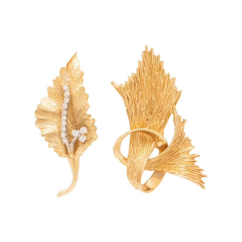 COLLECTION OF YELLOW GOLD BROOCHES