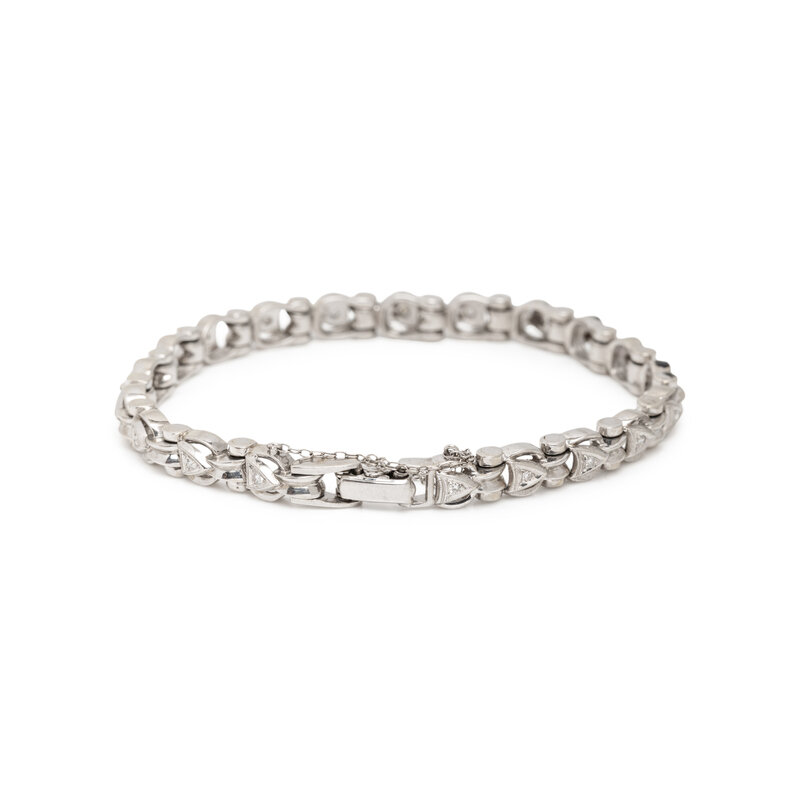 Single cut diamonds weighing approximately 0.15 carat total. 14 karat white gold. 6 1/2 inches long.