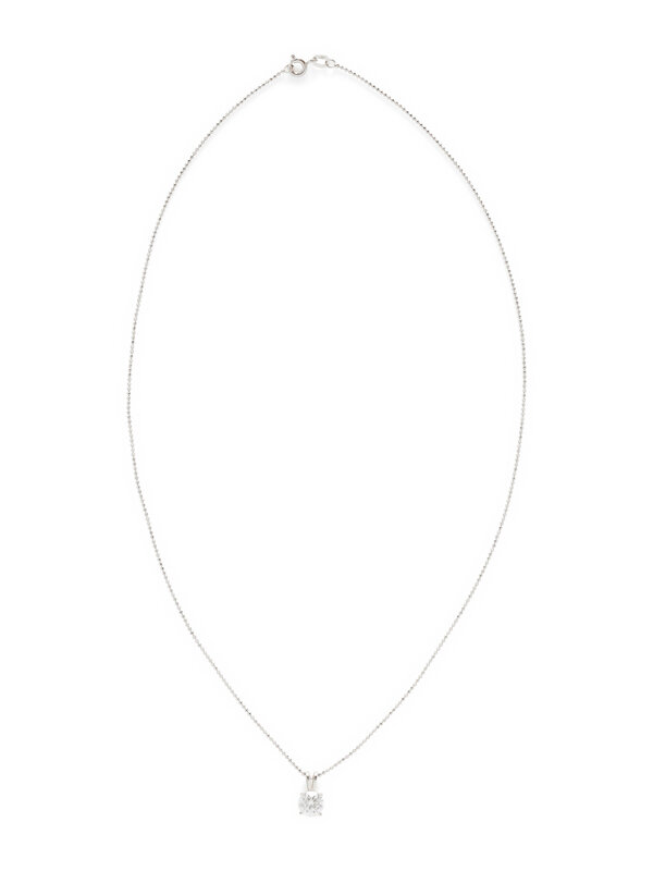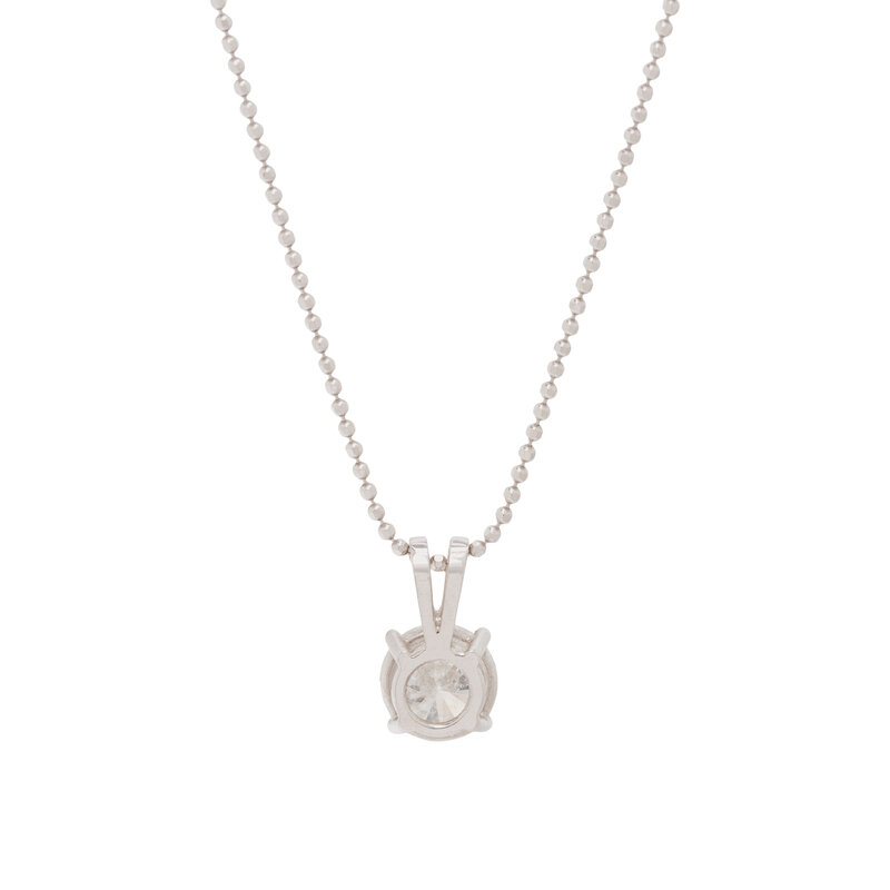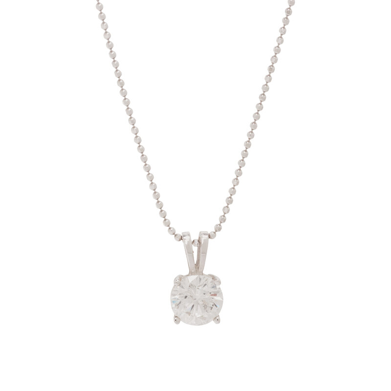 Round brilliant cut diamond weighing approximately 1.05 carats. 14 karat white gold. 18 inches long.