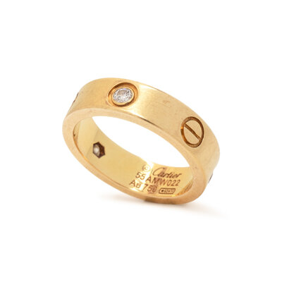 Stamp: Cartier 55 (European ring size) AMW022 Au750 (Italian hallmark).