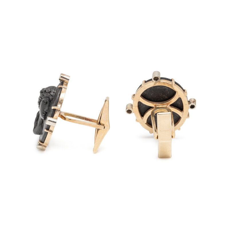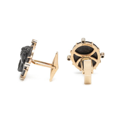 BLACK CAMEO AND DIAMOND CUFFLINKS