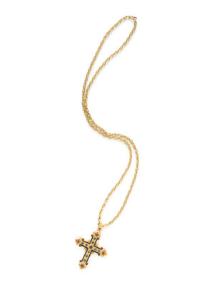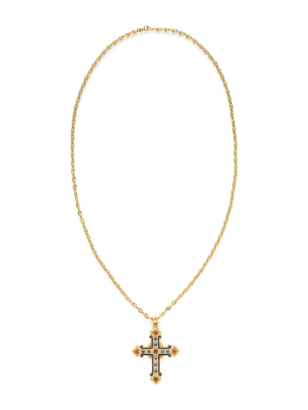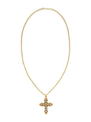 EMERALD, RUBY, AND ENAMEL CROSS PENDANT NECKLACE