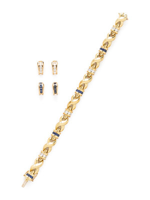 SAPPHIRE, DIAMOND, AND YELLOW GOLD JEWELRY SUITE