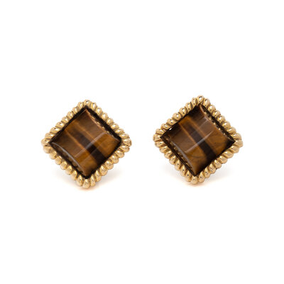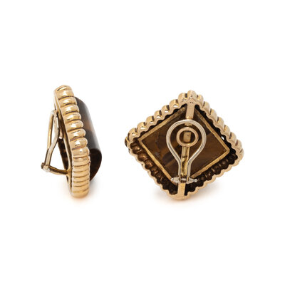 TIGER'S EYE AND YELLOW GOLD CLIP EARRINGS