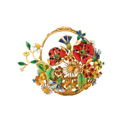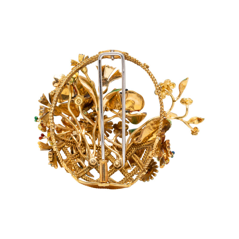 ENAMEL AND MULTIGEM FLOWER BASKET BROOCH