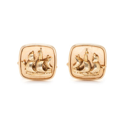 ENGLISH, YELLOW GOLD SHIP CUFFLINKS
