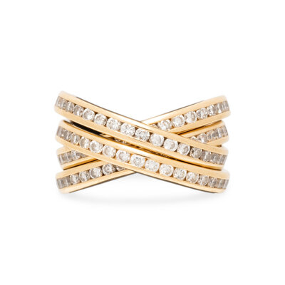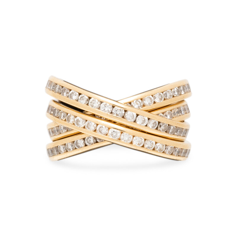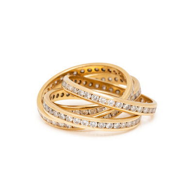 FRENCH, YELLOW GOLD AND DIAMOND ROLLING RING