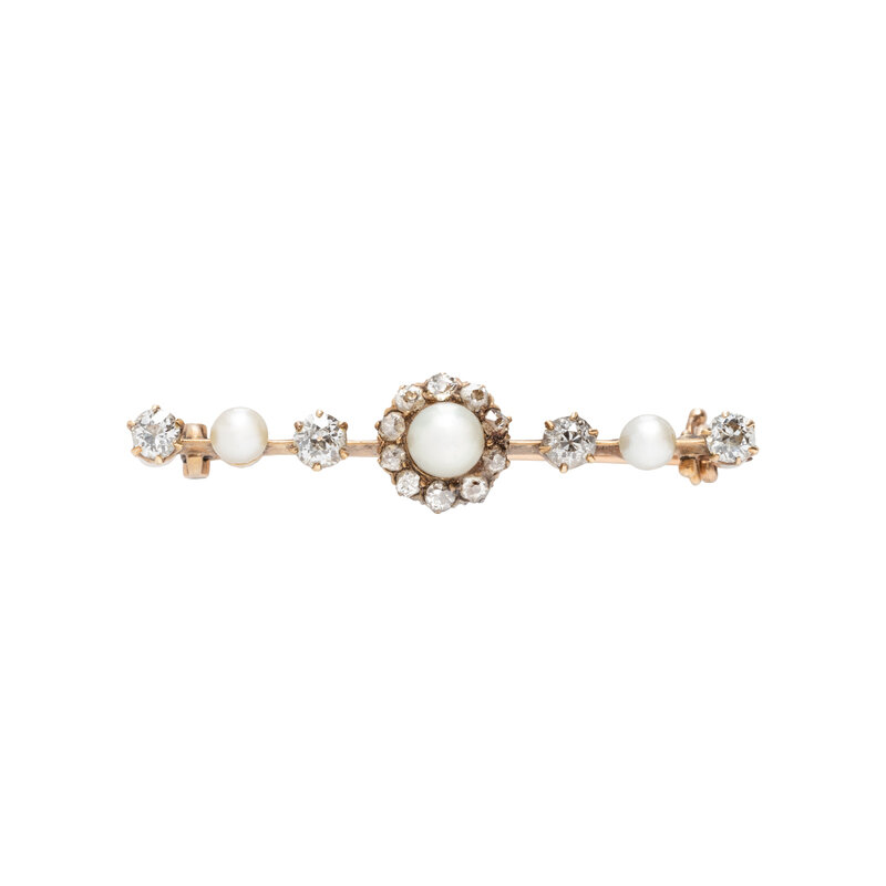ANTIQUE, CULTURED PEARL AND DIAMOND BROOCH