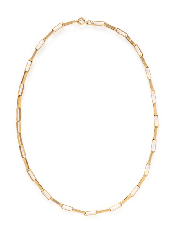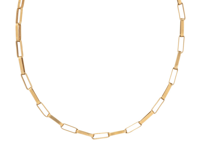 Rectangular links measuring approximately 3.00 mm. 14 karat yellow gold. 17 1/2 inches long.