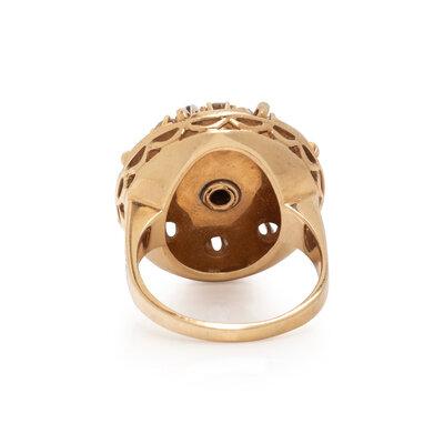 DIAMOND, ENAMEL AND YELLOW GOLD RING