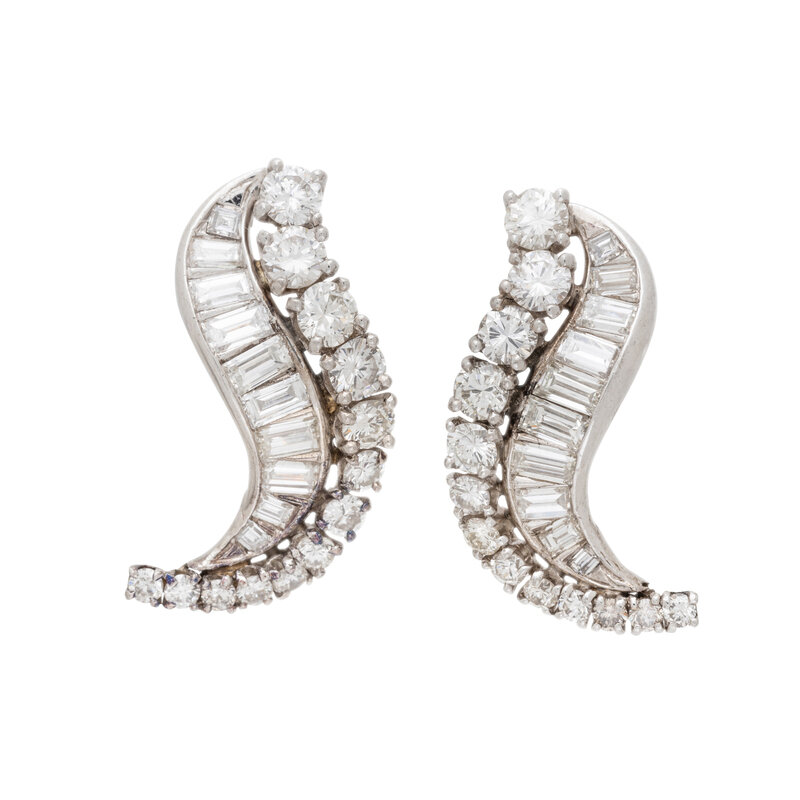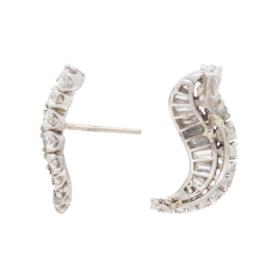 DIAMOND AND PLATINUM SCROLL EARRINGS
