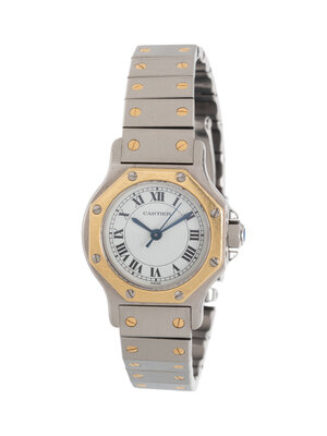 CARTIER, STAINLESS STEEL AND YELLOW GOLD 'SANTOS RONDE' WATCH