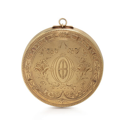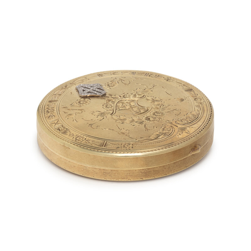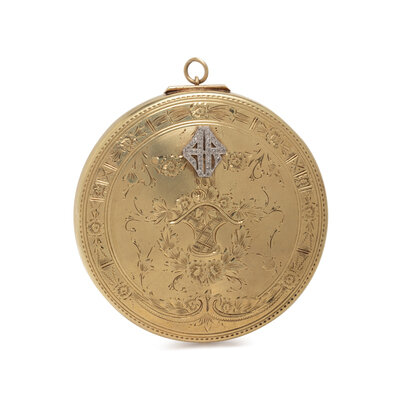 Rose cut diamonds. 14 karat yellow gold. 2 3/4 inches wide.