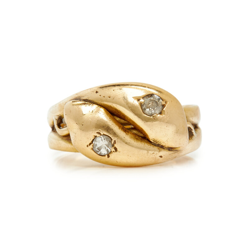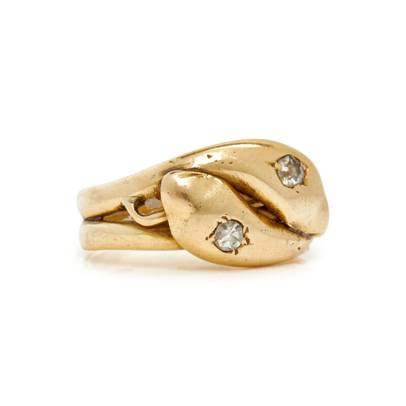 VICTORIAN, YELLOW GOLD AND DIAMOND SNAKE RING
