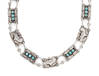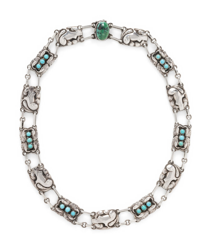 GEORG JENSEN, STERLING SILVER AND TURQUOISE NECKLACE