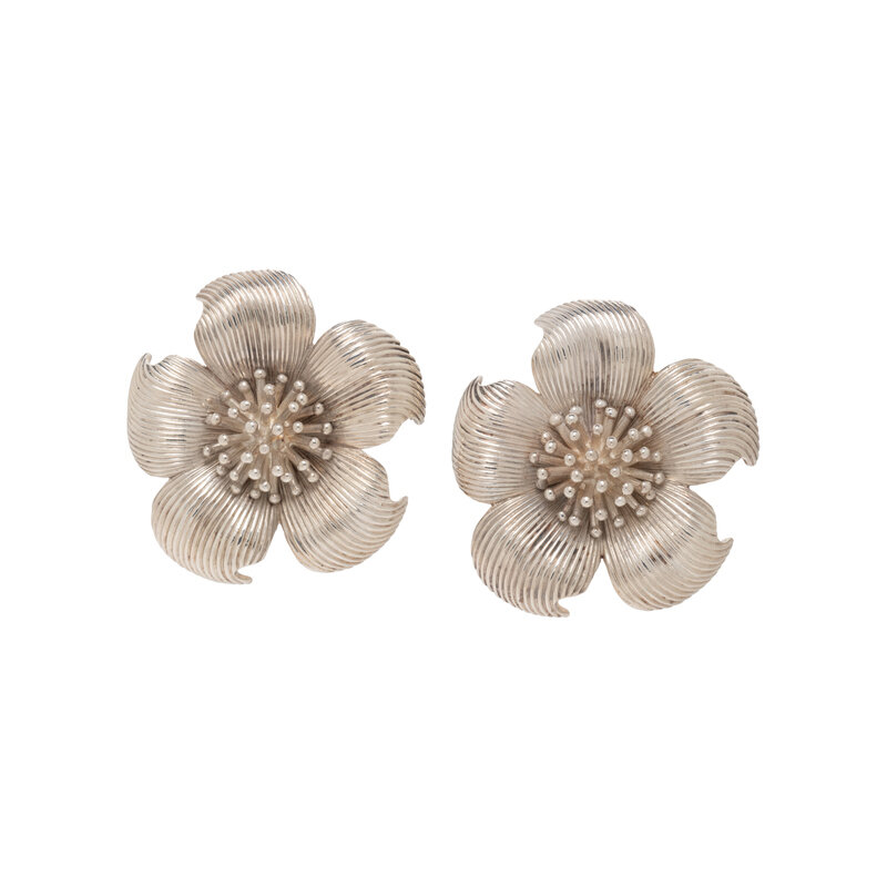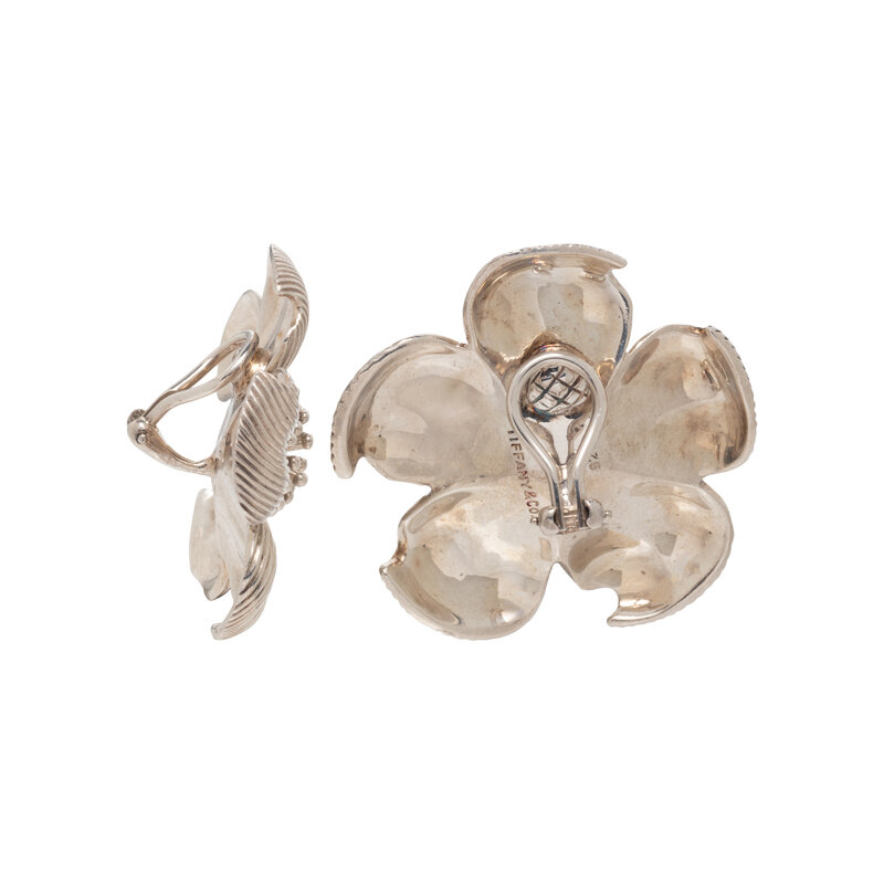 TIFFANY & CO., STERLING SILVER FLOWER CLIP EARRINGS