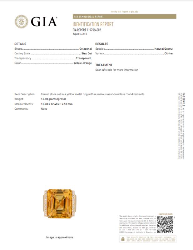 GIA, 2018, Report No. 1192564082, Yellow-Orange color, Natural Quartz, Citrine