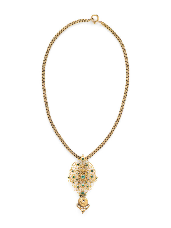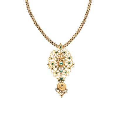 ANTIQUE, EMERALD PENDANT NECKLACE