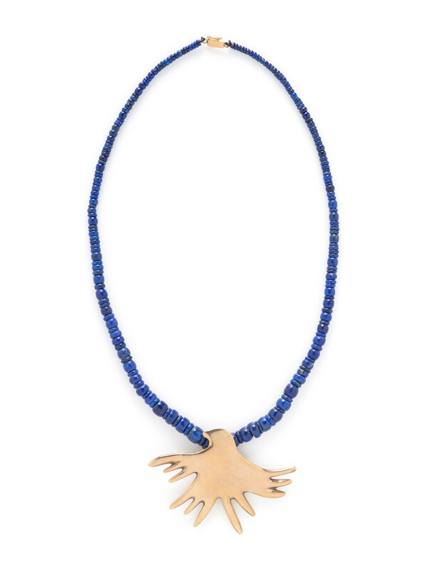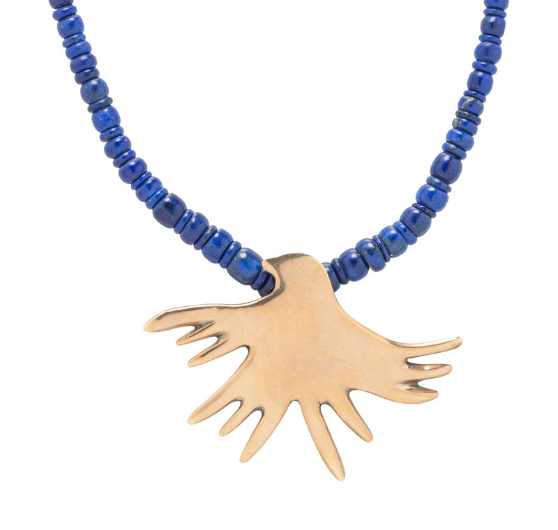 YELLOW GOLD THUNDERBIRD AND LAPIS LAZULI BEAD NECKLACE