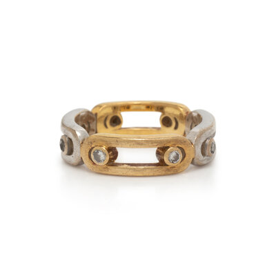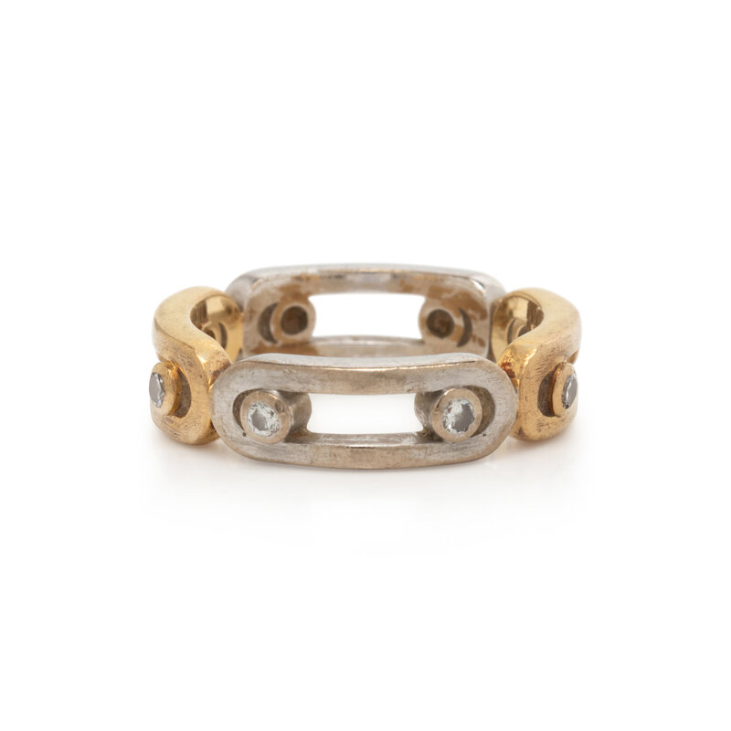 Round brilliant cut diamonds. Yellow and white gold. Ring size 5 3/4.