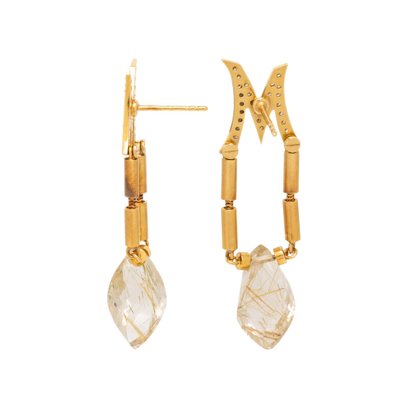 DIAMOND AND RUTILATED QUARTZ 'M' EARRINGS