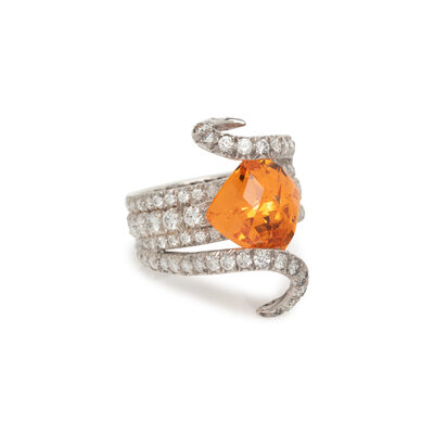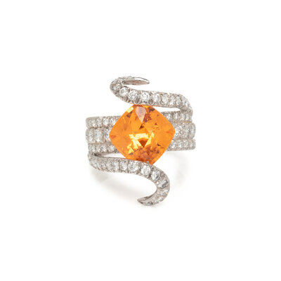 ORANGE GARNET, DIAMOND, AND PLATINUM RING