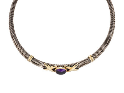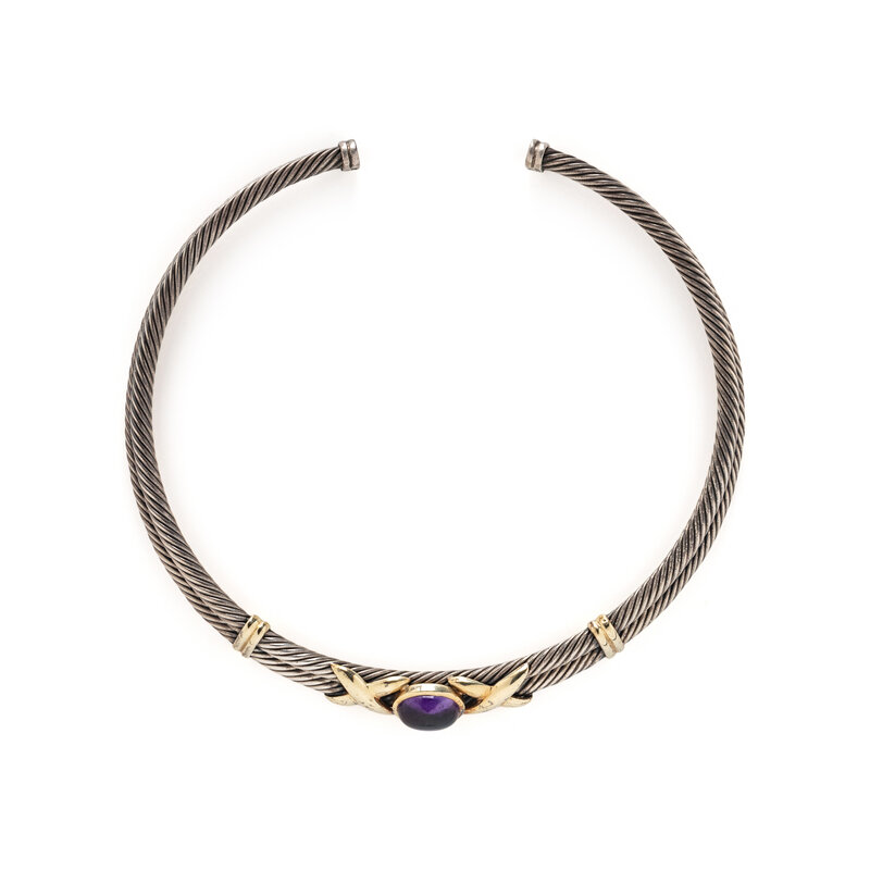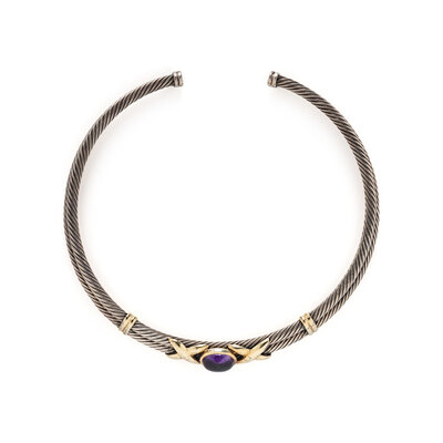 DAVID YURMAN, STERLING SILVER, YELLOW GOLD, AND AMETHYST CHOKER NECKLACE