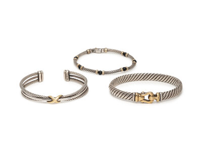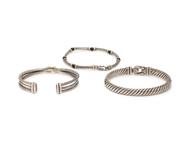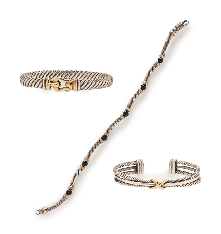 DAVID YURMAN, COLLECTION OF STERLING SILVER AND YELLOW GOLD BRACELETS