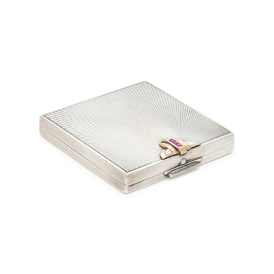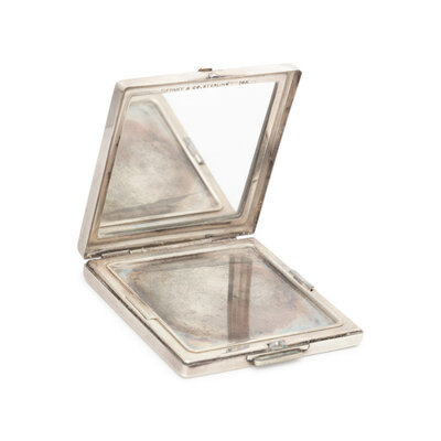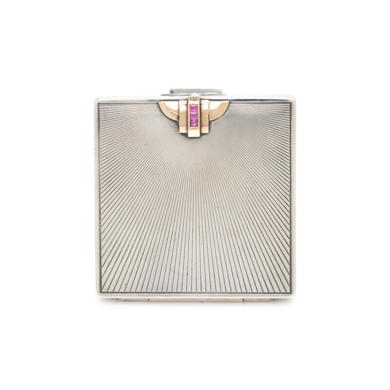 TIFFANY & CO., STERLING SILVER, YELLOW GOLD AND RUBY COMPACT