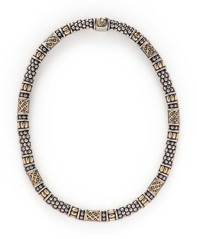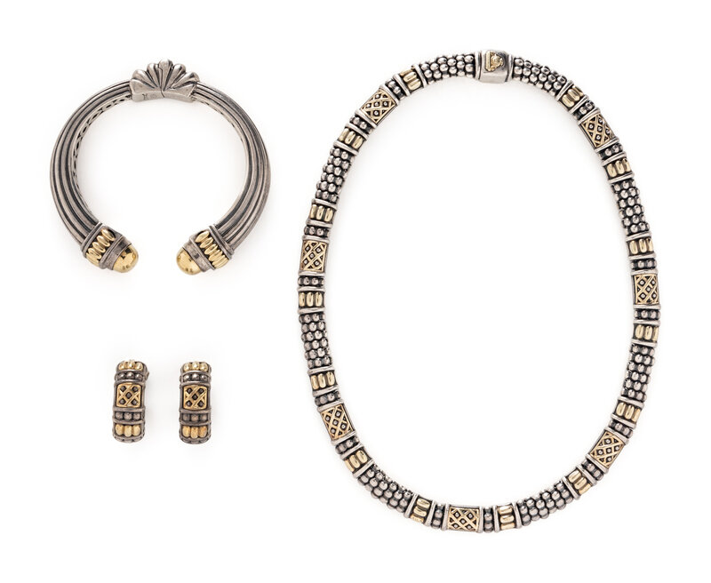 LAGOS, STERLING SILVER AND YELLOW GOLD 'CAVIAR' JEWELRY SUITE