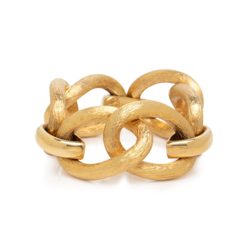 18 karat yellow gold. 7 1/2 inches long, 1 1/4 inches wide.