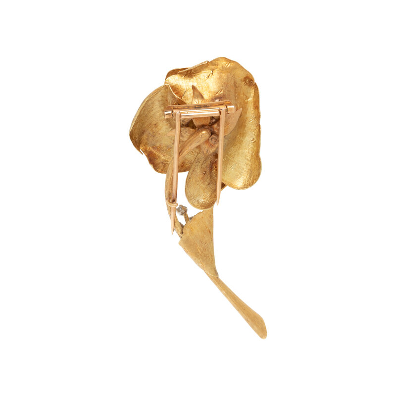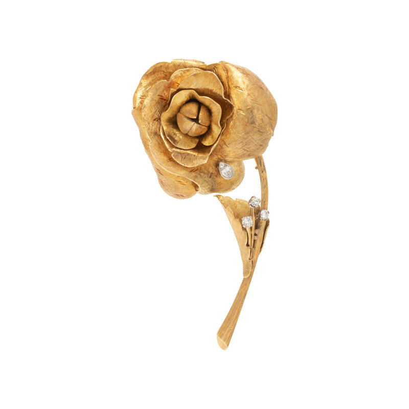 YELLOW GOLD AND DIAMOND ROSE BROOCH