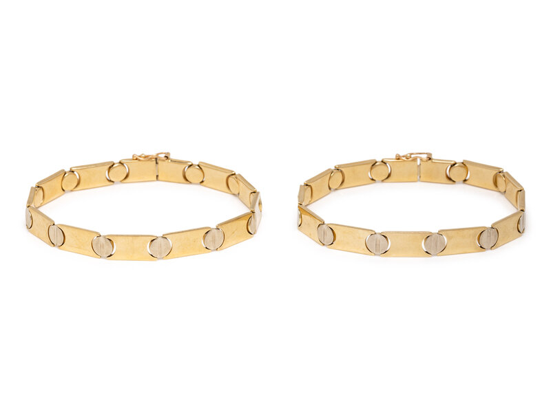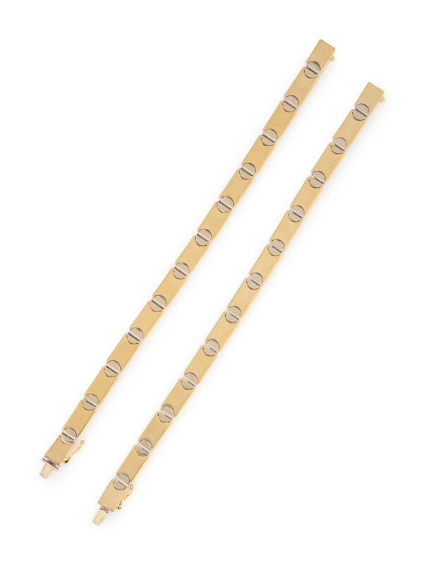 PAIR OF YELLOW GOLD NAIL HEAD MOTIF BRACELETS