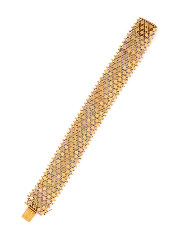 Yellow gold. 7 3/4 inches long, 24.00 mm wide.