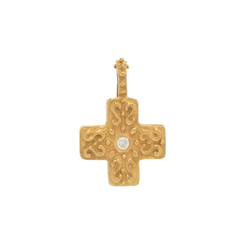 KATY BRISCOE, YELLOW GOLD AND DIAMOND CROSS PENDANT