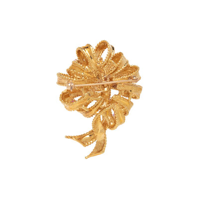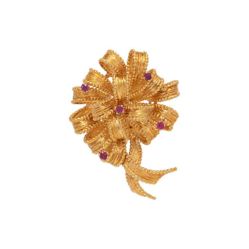 TIFFANY & CO., RUBY AND YELLOW GOLD RIBBON BROOCH