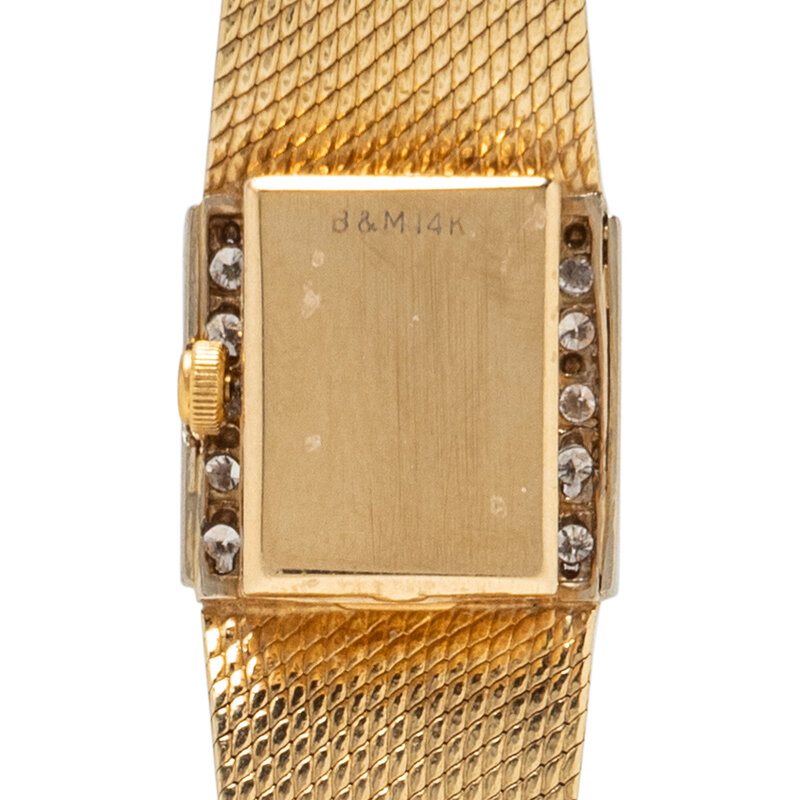 Stamps: Case back: B&M 14K. Clasp: 14K. Inner case back: BAUME & MERCIER GENEVE 924142 89.