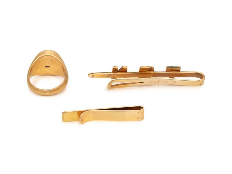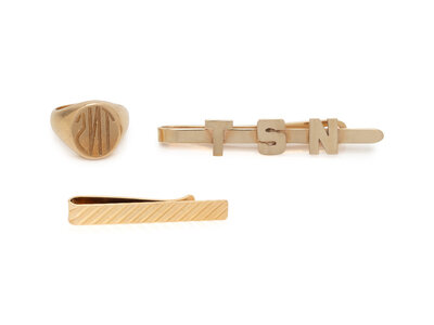 One signet ring and two tie bars. Ring size 9. Tie bars: 1 1/2 - 2 1/2 inches long.