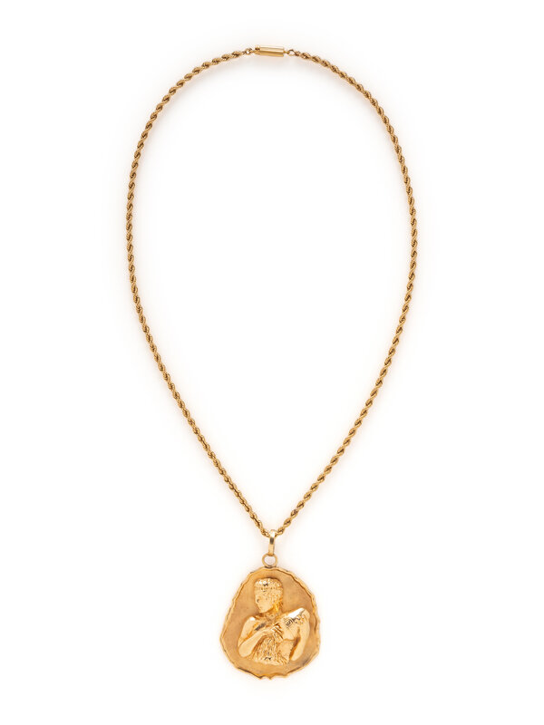 Yellow gold. Pendant: 1 3/4 x 1 1/2 inches. Chain: 18 1/2 inches long.