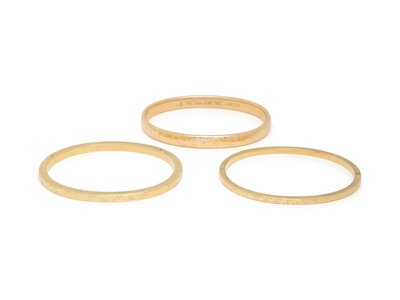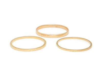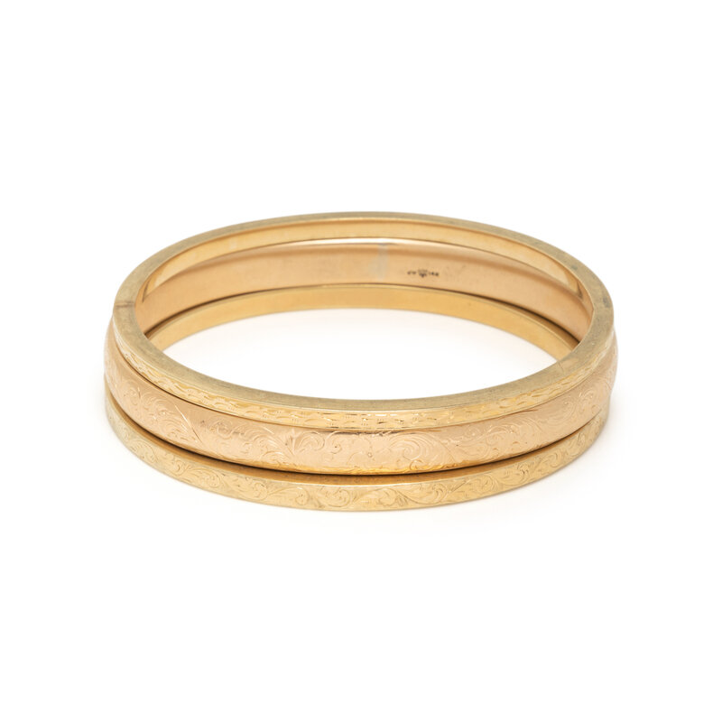 14 karat yellow gold. Each 7 1/4 inches inner circumference.