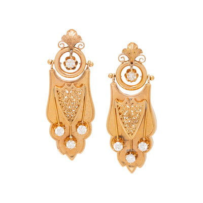 VICTORIAN YELLOW GOLD AND DIAMOND EARRINGS